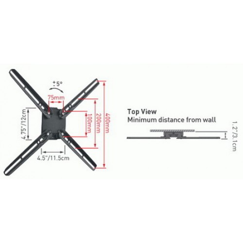 Кронштейн для настенного крепления ЖК телевизоров с диагональю экрана до 56", фиксированное положение, расстояние от стены 2.4 см, Vesa 75x75/100x100/200x200/300x300/400x200/400x400 Упаковка - картон. Максимальная нагрузка 30кг.