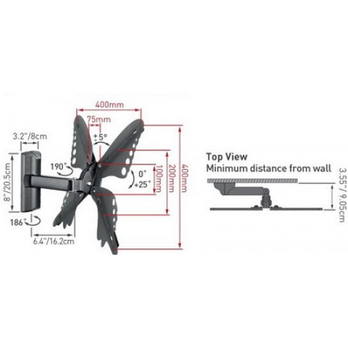 Кронштейн для настенного крепления ЖК телевизоров с диагональю экрана до 56", 3 регулировки положения, максимальная нагрузка 30 кг, адаптер Vesa 75x75/100x100/200x200/300x300/400x200/400x400, цвет - серебристый. Упаковка - блистер