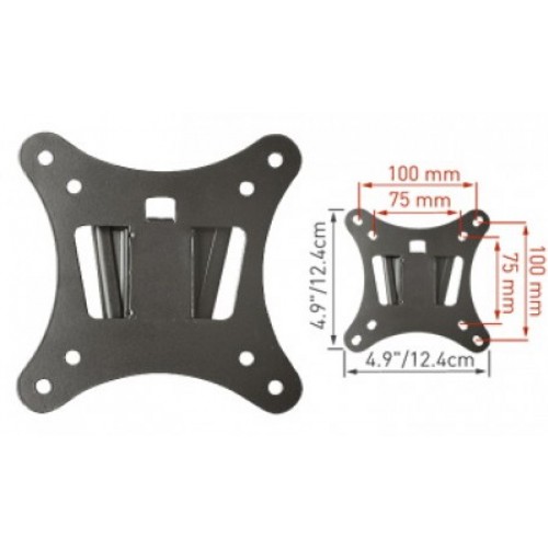 Кронштейн для настенного крепления ЖК телевизоров и компьютерных ЖК мониторов с диагональю экрана до 26" (66 см), фиксированное положение, расстояние от стены 1.3 см, максимальная нагрузка - 15 кг, адаптер VESA 75/75, 100/100. Цвет - Черный.