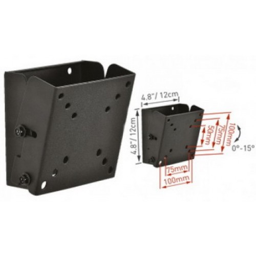 Кронштейн для настенного крепления ЖК телевизоров и компьютерных ЖК мониторов с диагональю экрана до 26" (66 см), фиксированное положение, расстояние от стены 5.3 см, максимальная нагрузка - 15 кг, адаптер VESA 75/75, 100/100. Цвет - Черный.